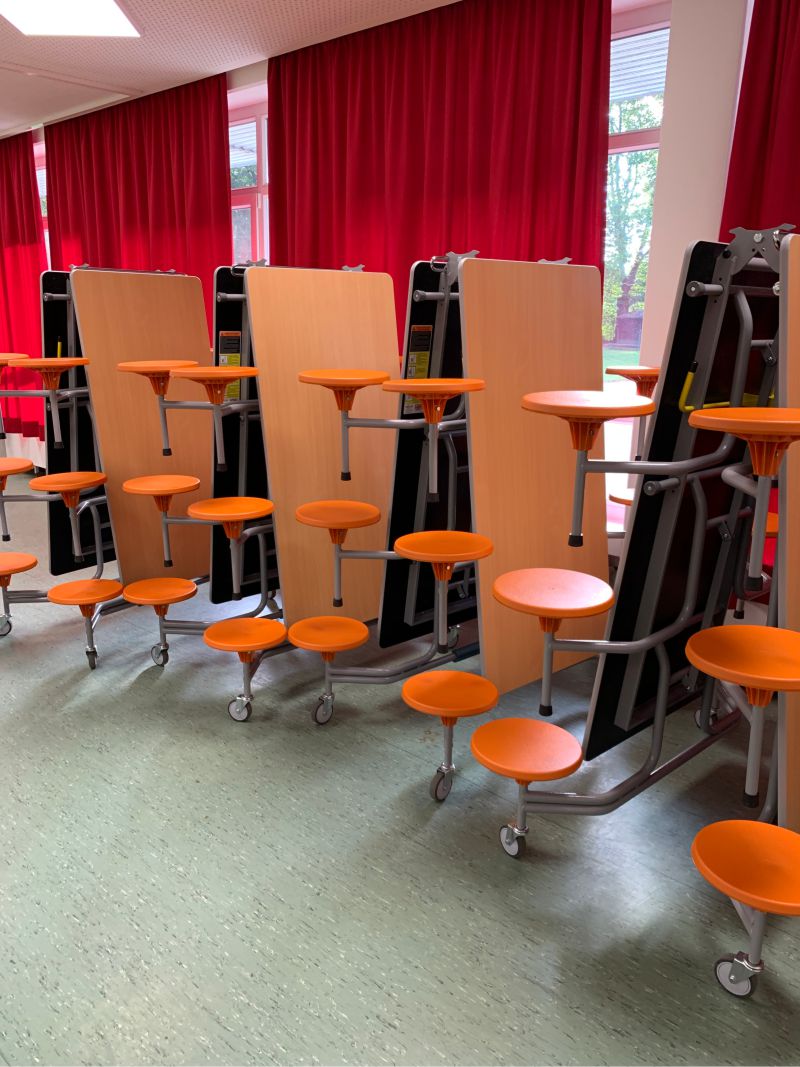 Für Mensen, Speiseräume und Mehrzweckflächen in Dortmunder Schulen: schnell einsatzbereit, leicht beweglich und auf eine hohe tägliche Beanspruchung ausgelegt.
