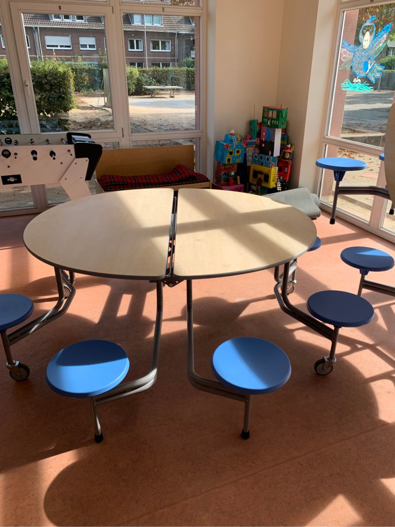 Der Kindergarten Table wurde für jüngere Kinder entwickelt und eignet sich hervorragend für Kitas, Familienzentren und Grundschulen in Dortmund. Die Tisch-Sitzgruppe unterstützt strukturierte Abläufe beim Essen, Spielen und Lernen und überzeugt durch ihre kompakte Handhabung, hygienische Oberflächen und robuste Verarbeitung.