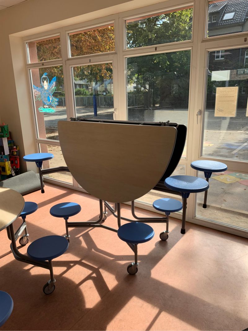 "Für Einrichtungen mit jüngeren Kindern sind robuste, pflegeleichte und gut organisierbare Möbel besonders wichtig. Die Tischsysteme erleichtern die tägliche Nutzung bei Essen, Spielen und Betreuung deutlich."